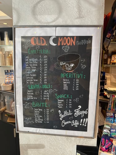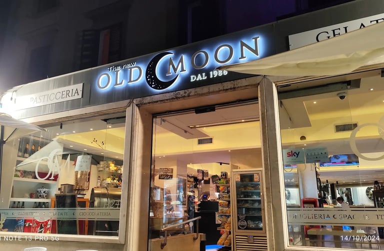 Il Nuovo Old Moon, gestito dai figli di uno dei precedenti gestori, è un luogo accogliente che coniuga cortesia e qualità. Ampia scelta di tramezzini, panini, pasticceria, gelati, dolci. A pranzo e cena servizio di ristorazione, che ancora non ho avuto modo di provare, ma dall'aspetto odierno della lasagna e dal suo profumo merita sicuramente un prossimo assaggio. Ampia scelta di verdure. Bibite per ogni gusto e caffè ottimo. Davvero soddisfatta!