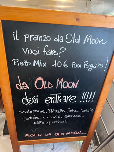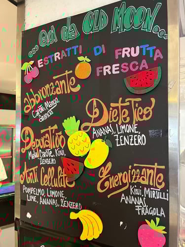 Solo da Old Moon puoi pagare un pranzo mix a solo 10 euro, assaporare un aperitivo o bere un frullato.
